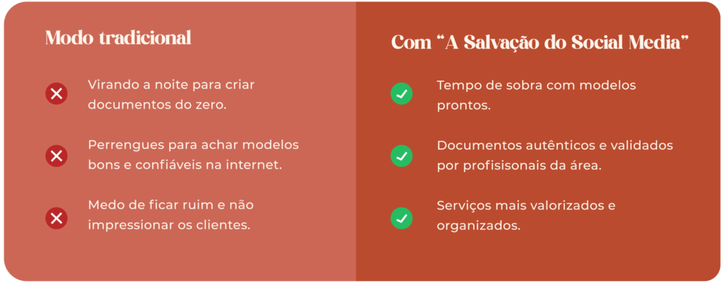 E desse caos todo, depois de muitos erros, nasceu “A Salvação do Social Media”: uma coleção de documentos completos, práticos e profissionais para não te deixar na mão nas horas mais apertadas da sua rotina de trabalho.
